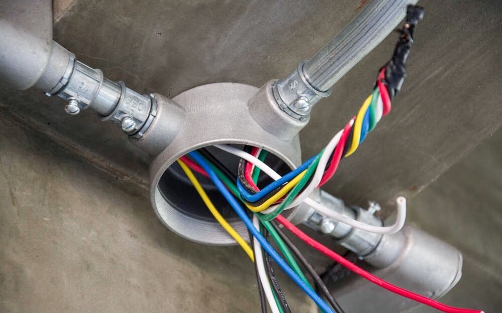 ③地线焊接:管路应作整体接地连接,穿过建筑物变形缝时,应有接地补偿装登。如采用跨接方法连接,跨接地线两端的焊接面不得小于该跨接线截面的6倍。卡接:镀锌钢管或可挠金屆电线保护管,应用专用接地线卡连接,不得采用熔焊连接地线。